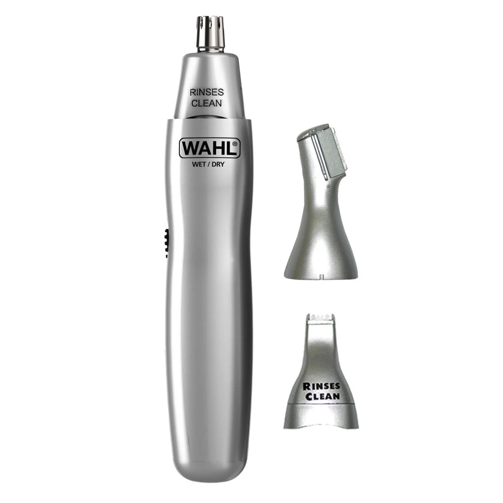 The Wahl 3 in 1 Ear, Nose & Brow Trimmer is a battery powered personal trimmer to remove unwanted ear and nose hair. Removeable and rinseable blades for easy clean and hygiene. Additional heads for eyebrow and detail trimming.