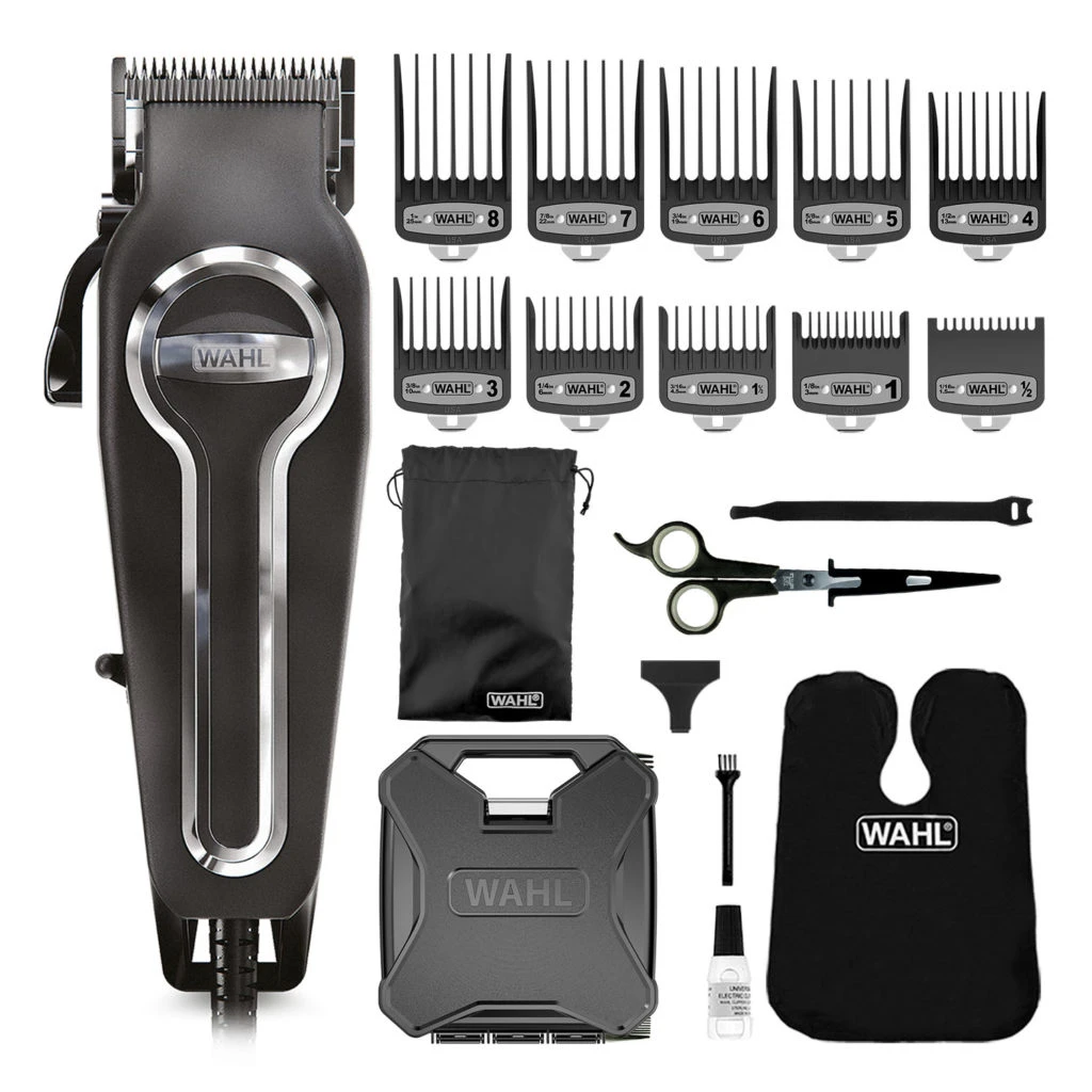 The Wahl Elite Pro is a powerful clipper with lifetime motor guarantee and adjustable taper lever for wide variation of cutting lengths. Secure-fit premium cutting combs for smoother clipping.