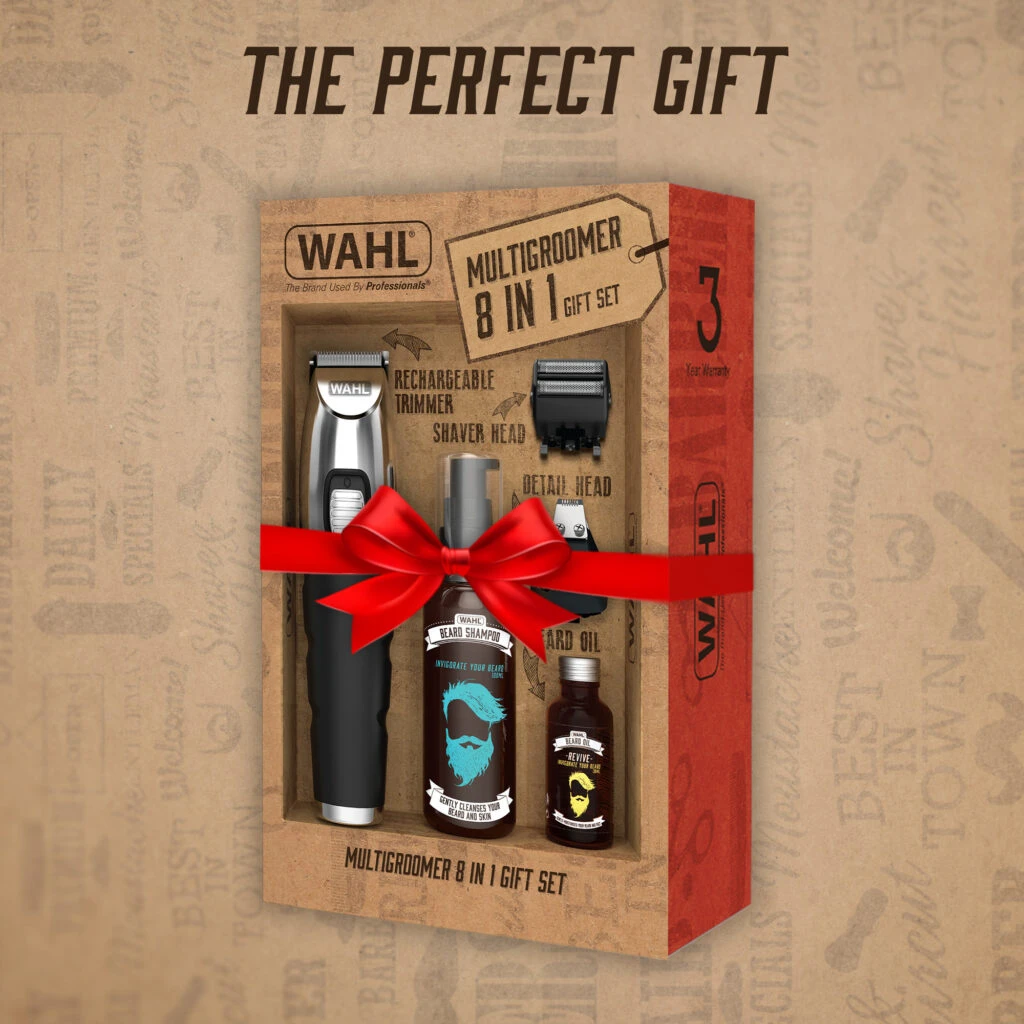 The Wahl Multigroomer 8 in 1 Gift Set is a complete grooming kit for face and body grooming. With 3 interchangeable heads for trimming, shaving and detailing.