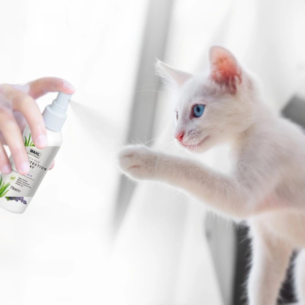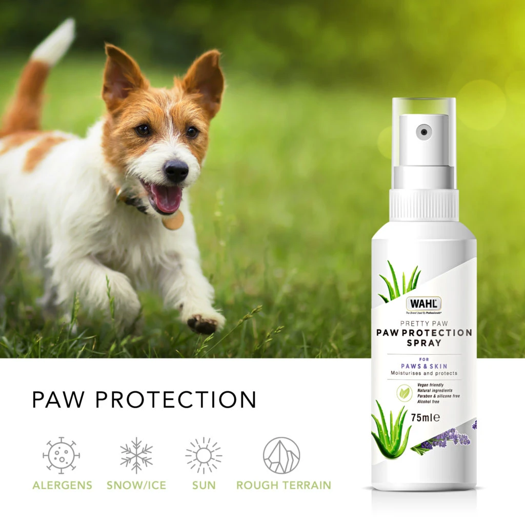 Wahl Pretty Paw Protection Spray moisturises and protects all pets paws and skin.